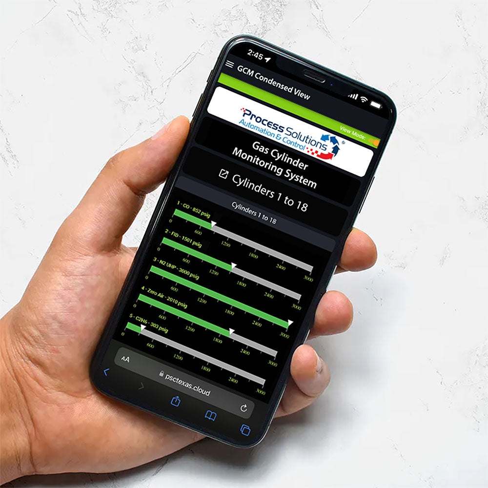 The Gas Cylinder Monitoring System (GCM) is an innovative solution that enhances the safety, efficiency, and compliance of gas storage and usage across various industries. Our GCMs allow users to seamlessly view and track important gas cylinder data such as gas type, blend, composition, expiration dates, lot numbers, etc., in addition to optional real time pressure monitoring to know the exact supply on hand – all of which is accessible for viewing on the web or app via a cloud server.